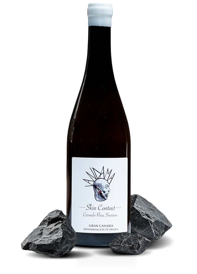 Skin Contact es la versión creativa del proyecto, una moscatel seca macerado con racimos enteros durante ocho meses. Se busca la complejidad de los aromas manteniendo siempre los primarios de moscatel, un vino que sorprende por su dulce aroma dulce y su boca seca con estructura. Ideal para sorprender en un maridaje y recordar a aquellas maceraciones originarias de Georgia o Chile.